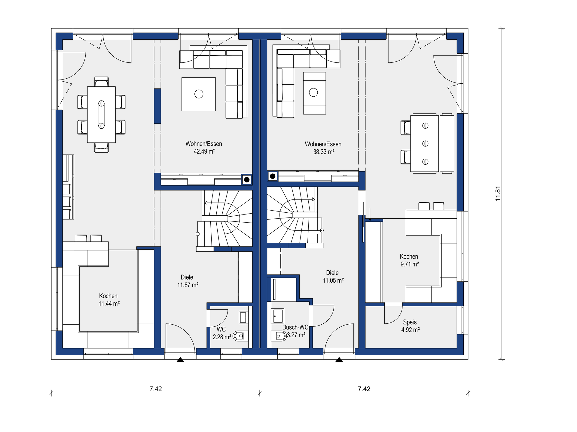 - Außenmaße 7,42 x 12,31 m