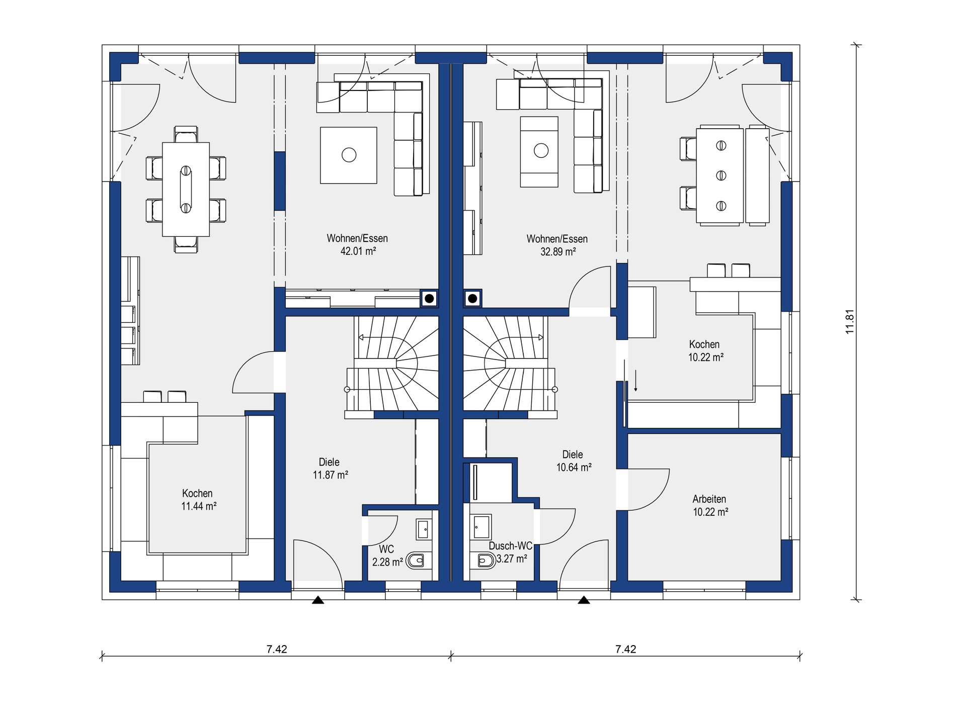- Außenmaße 7,42 x 12,31 m