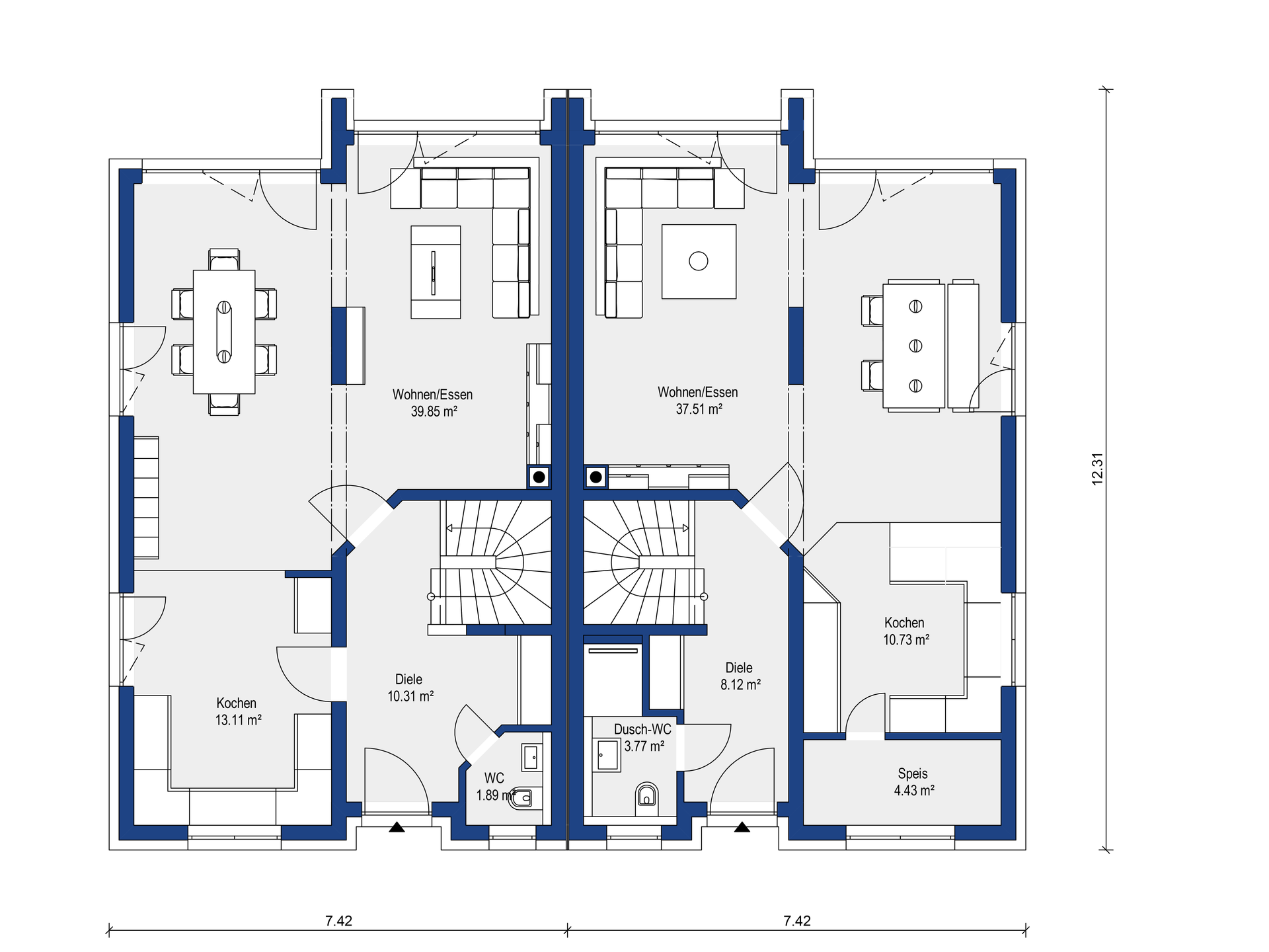 - Außenmaße 7,42 x 12,31 m
